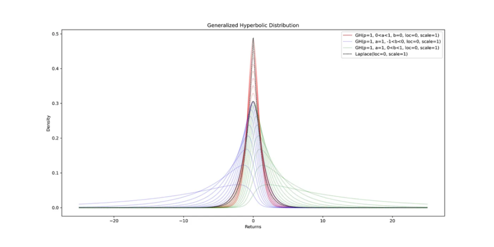 双曲分布[1],最初是为了模拟风沙波动[2](沙漠中的沙子动态)而开发的,由于其参数的灵活性[3], 在建模金融资产回报方面具有应用。