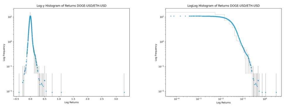 尽管 Dogecoin 和 Ethereum 已经存在了 7 年以上,但这对交易对的跳跃过程却有自己的特点,这使得应用统计近似方法变得困难。