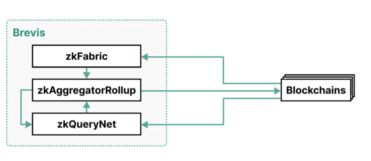 Brevis 的架构由三个组件组成:zkFabric、zkQueryNet 和 zkAggregatorRollup。