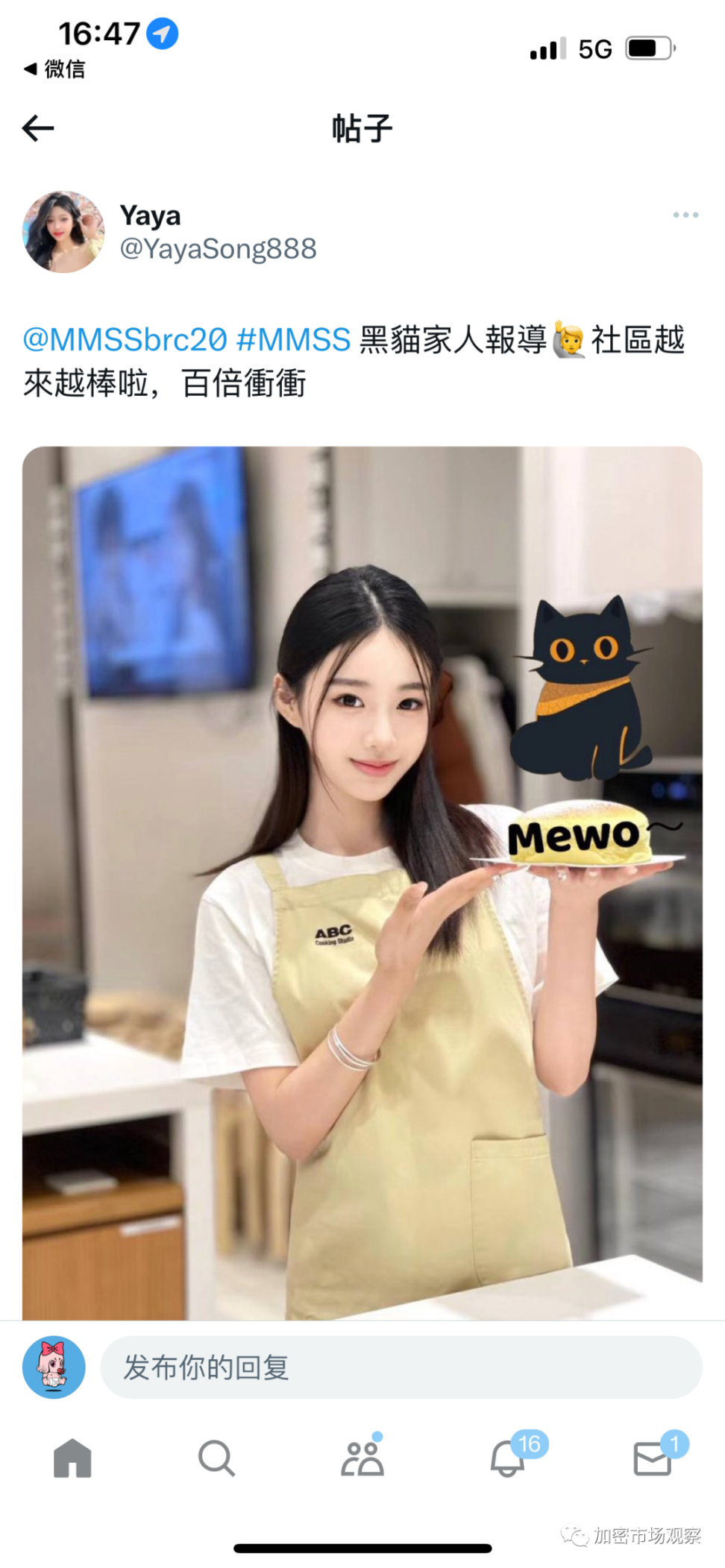 2. 作为一个社区治理项目,最重要的就是出圈!各位来感受一下黑猫女神有没有这个实力: