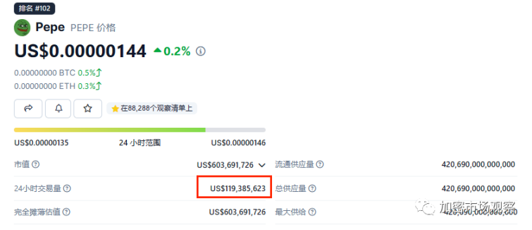 有意思的是,这些 MEME 币的流通性还很强,24 小时交易量能占市值的 10% 以上,可以说秒杀港股 100% 的股票。