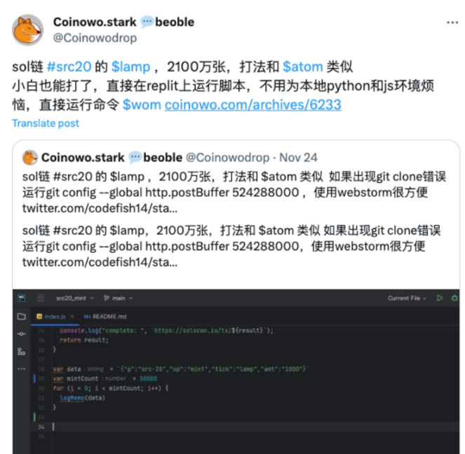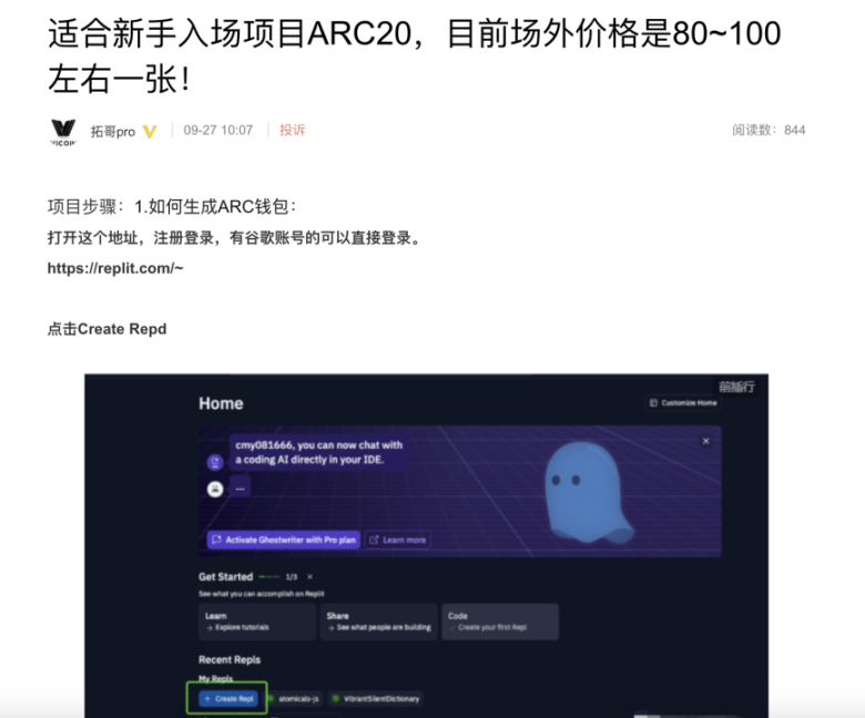 类似的教程虽不局限于 ARC20 打新教程,但却也是推荐使用 Replit 平台。
