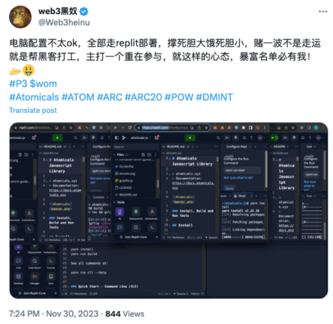 然而其中有些教程是讲解如何使用 Replit 在线部署 atomicals-js 项目来生成钱包,以及如何转入 ATOM ARC20 代币等。