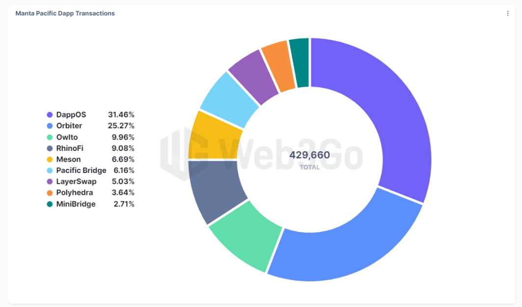 目前在 Manta Network 网络中,有超过 31% 的链上交易量来自于 dappOS 端,并且该比例目前仍在持续的上升,这不仅体现了 dappOS 对于链上 Dapp ,新公链生态增长所带来的增益,同时也反应出了功能抓手突出的 dappOS 在链上交互领域受欢迎的程度。