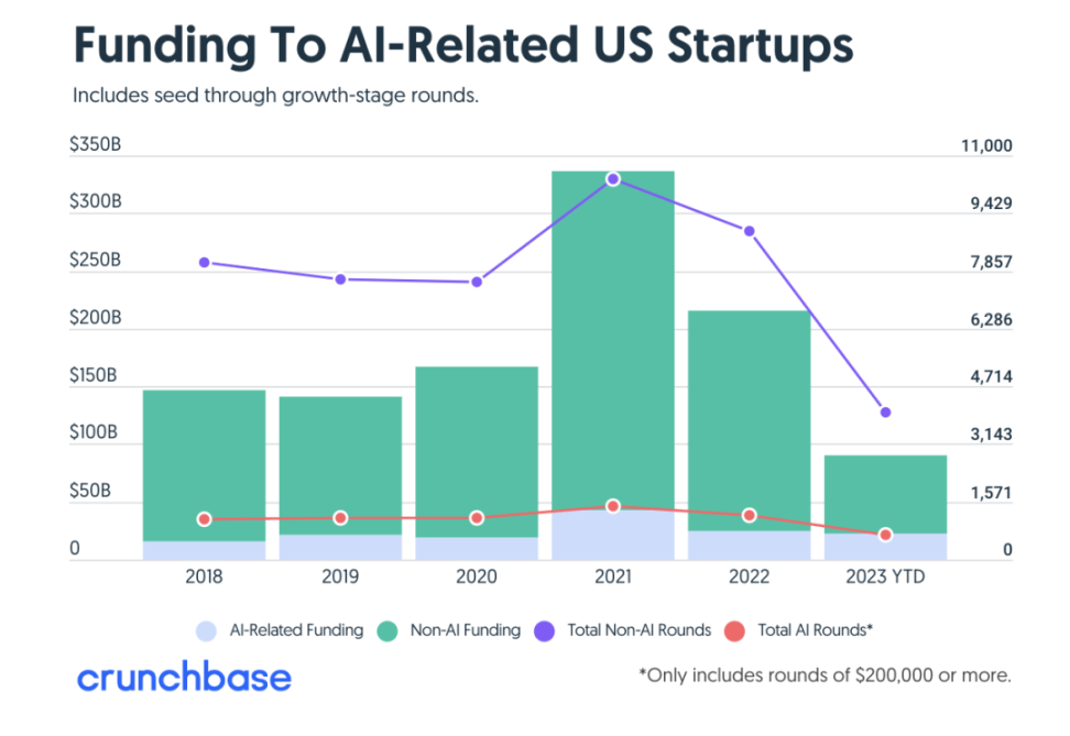 乍一看,并不太令人震惊。AI 比以往任何时候都引起了更多关注,尤其是年初这个领域的头部公司(OpenAI、Anthropic 等)接连获得巨额融资。