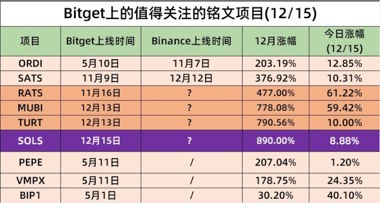 早在今年 4 月,Bitget 就開始布局了 BRC-20 賽道,並先後上線了多個早期熱門的 BRC20 生態項目,如 PEPE,ORDI,BIP1 等。 而对于铭文赛道的领头羊 ORDI,Bitget 在今年 5 月 10 日就首发上线,上线初价格仅为 1 美金,而随着 ORDI 上线 Binance,其价格已上涨了 5500%。同样,近期引发社区热烈讨论和关注的 SATS,Bitget 于 11 月 9 日上线,而一个多月后随着 Binance 上线 SATS,SATS 价格上涨了 769%。为了方便用户更简单地交易更多热门的 BRC-20 代币,Bitget 还上线了 BRC-20 代币的交易专区,目前支持了多个 BRC-20 的热门代币。