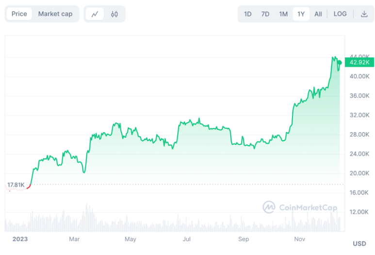 近期加密货币市场可谓是大幅回暖,比特币减半、现货 ETF 审批通过作为主线叙事将比特币从年初的 $16,000 推波至目前的 $43,000 区间。
