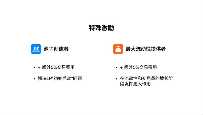 (1)特殊激励。Surf 上每个池子的创建者能够获得额外 5% 的交易费用,每个池子最大的 LP 也可以获得 5% 的交易费用。DeFi 领域种常见的问题是先有交易需求还是先有流动性的问题,5% 的初创奖励能很好地解决「初始启动」的问题,而针对最大 LP 的 5% 奖励则会在流动性和交易量的增长阶段发挥更大作用。
