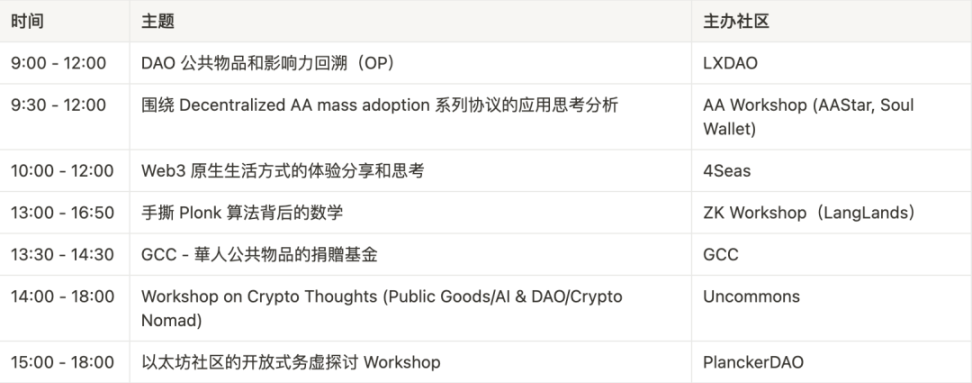 主题营地日「公共物品的 d/acc Workshop」由联合发起方 PlanckerDAO、LXDAO、LangLands、AAStar、4Seas、Uncommons、GCC 一起参与并在主题营地日开启话题分享的活动。