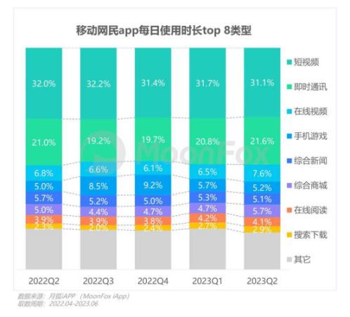 除了关键帧的问题外,AI 生成视频还面临着诸多挑战,而这些挑战,与 AI 生图这种静态的任务相比,难度根本不在一个层面。动作的连贯性:为了让视频看起来自然,AI 需要理解动作的内在规律,预测物体和角色在时间线上的运动轨迹。长期依赖和短期依赖:在生成视频时,一些变化可能在较长的时间范围内发生(如角色的长期动作),而另一些变化可能在较短的时间范围内发生(如物体的瞬时运动)。为了解决这些难点,研究人员采用了各种方法,如使用循环神经网络(RNN)、长短时记忆网络(LSTM)和门控循环单元(GRU)来捕捉时间上的依赖关系等等。但关键在于,目前的 AI 文生视频,并没有形成像 LLM 那样统一的,明确的技术范式,关于怎样生成稳定的视频,业界其实都还处于探索阶段。其价值,就在于其能真切地解决很多行业的痛点和需求,而不是像现在的很多“套壳”应用那样,要么锦上添花,要么圈地自萌。关于这点,可以从“时间”和“空间”两个维度上,对 AI 文生视频的将来的价值空间做一番审视。从时间维度上来说,判断一种技术是不是“假风口”、假繁荣,一个最重要的标准,就是看人们对这类技术的未来使用频率。根据月狐 iAPP 统计的数据,从 2022 年 Q2 到今年 6 月,在移动互联网的所有类别的 APP 中,短视频的使用时长占比均高达 30% 以上,为所有类别中最高。