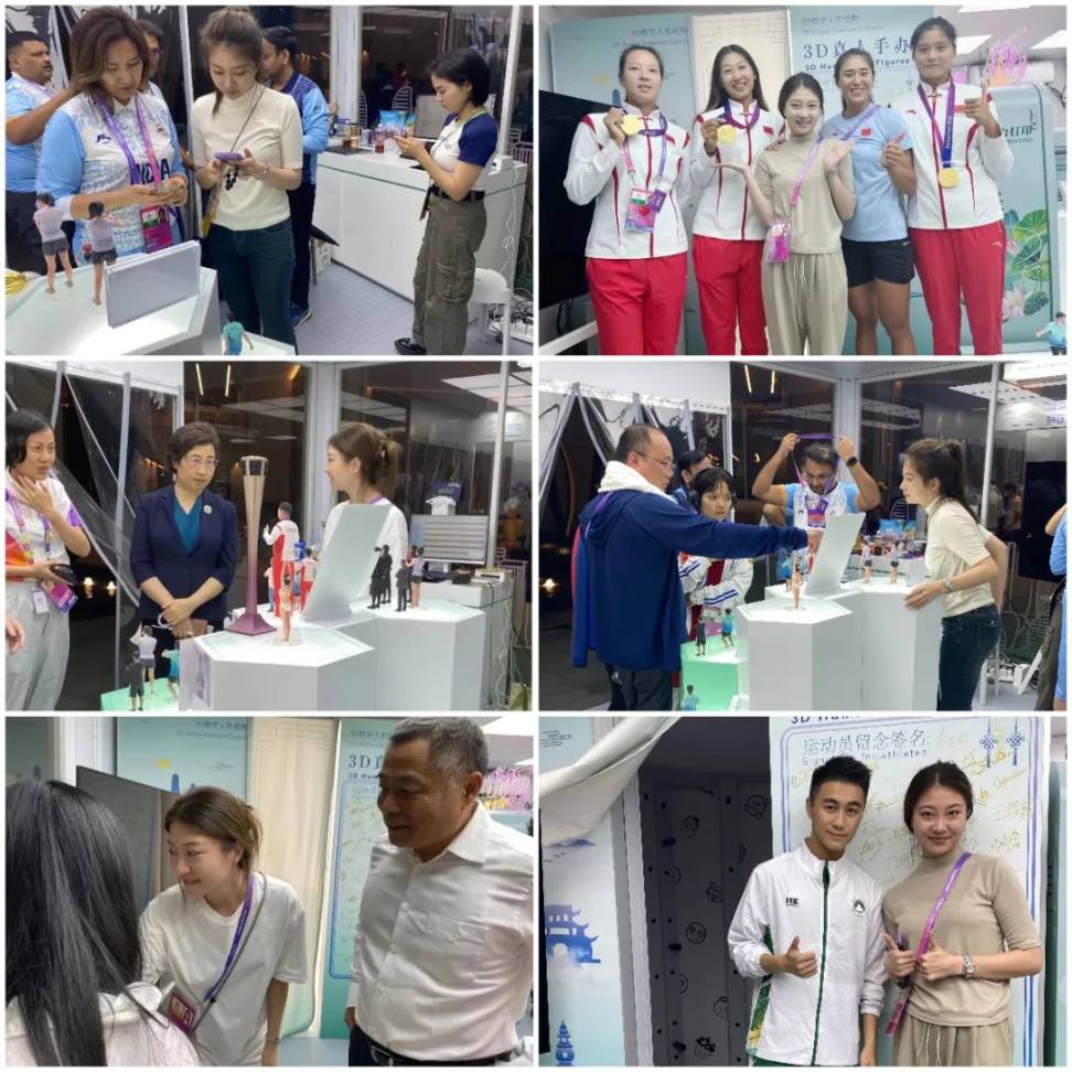 在这次历经半月之久的盛事中,我们的两位美女明明和简丽娜,表现得格外出色,不辞辛劳,始终以饱满的热情接待了数千位不同国家的来访者,详细地向大家介绍了 3D 扫描和打印技术,成为亚运村的网红打卡点,一度登上微博热搜前三。