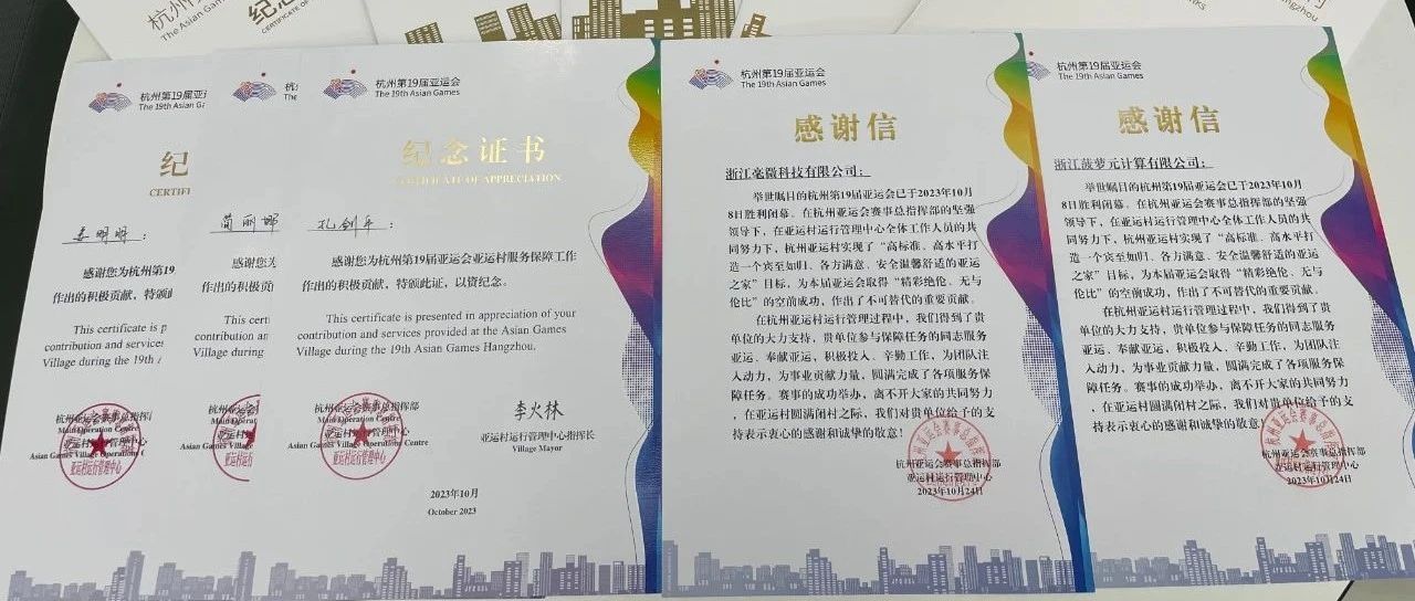 10 月 30 日,毫微科技及其董事长孔剑平先生收到了特别的感谢信,这是亚运会组委会赠予的一份珍贵礼物,以表达他们对 iPollo 菠萝元宇宙在亚运会期间的表现的认可和赞赏。