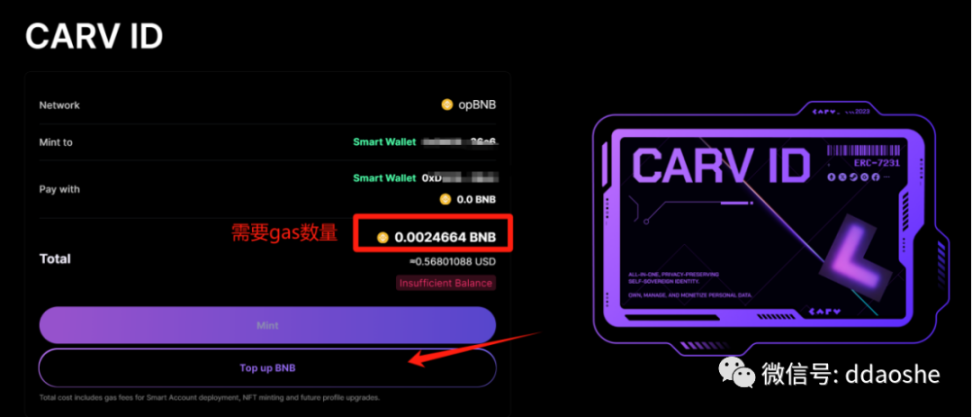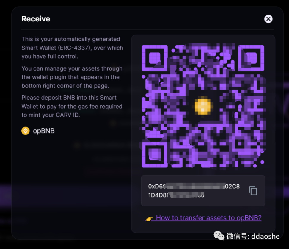 5 点击 top up bnb,可以看到自己生成的智能账户