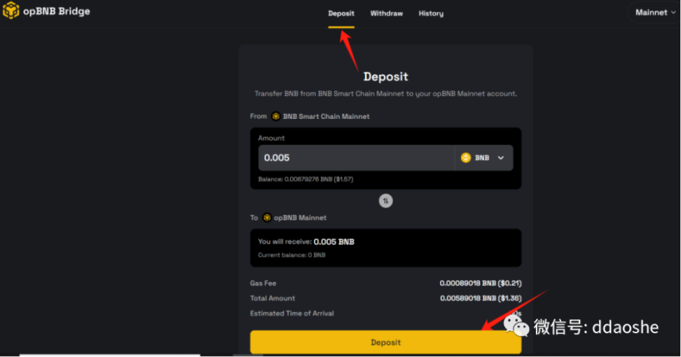 https://opbnb-bridge.bnbchain.org/deposit将少量 bnb 跨链至 opbnb 网络,不想跨链的话,可以去 BN 直接提到 opbnb 网络