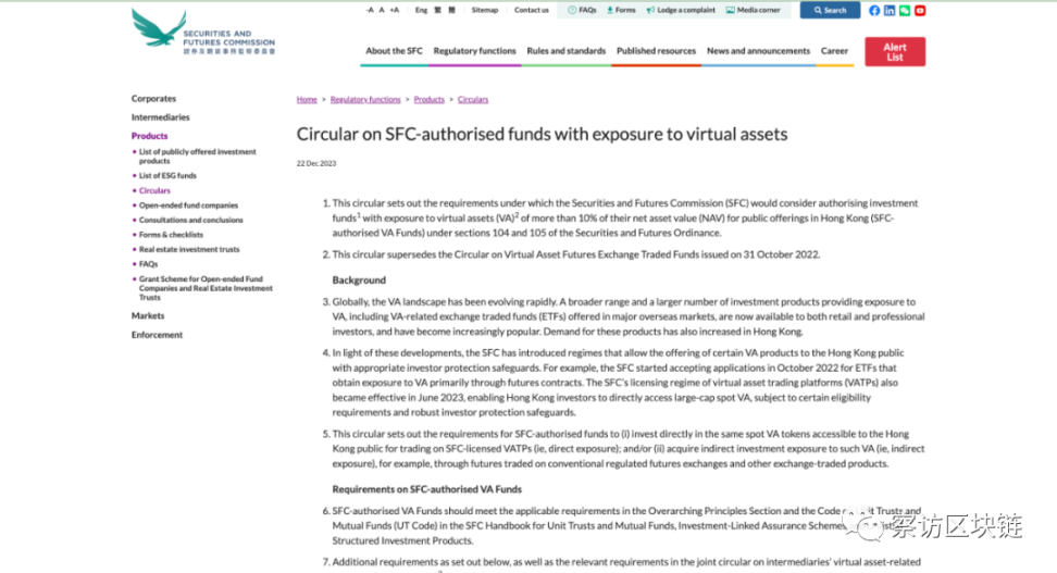 12 月 22 日,香港证监会官网公布《有关证监会认可的涉及虚拟资产的基金的通告》,取代 2022 年 10 月 31 日发出的《虚拟资产期货交易所买卖基金通函》,并指出对于被准许在持牌交易平台交易的虚拟资产(如比特币,以太坊),持牌机构可发行与管理对应的现货 ETF,并在持牌交易平台或受认可的财务机构,以实物和现金两种方式进行认购和赎回。