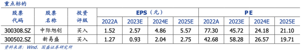光通信供应商:中际旭创、新易盛、天孚通信。