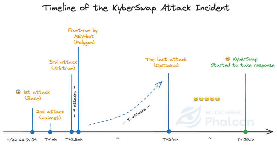 1>> 11/22/2023 22:54:09 +UTC,Phalcon Block 监测到第一笔针对 KyberSwap 的攻击,发生在 Base 链上,损失金额 $857,025;