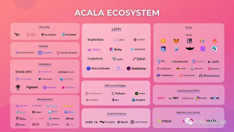 Acala 分享最新生态概览图,并表示在其出色的合作伙伴的支持下,Acala 的生态系统正在成长!很快还将有新的合作伙伴加入!