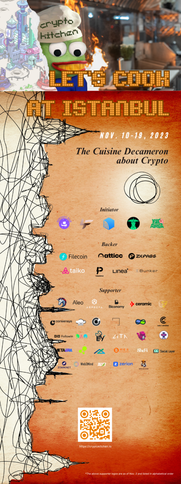 11 月 11 日至 18 日,由 Odyssey DAO、Fusion Labs、DataverseOS、Buidler DAO 和 Fat Garage 胖车库共同发起的 CryptoKitchen23 加密厨房在土耳其伊斯坦布尔连续成功举办 9 场以演讲、圆桌、工作坊、炉边谈话、午餐会、闭门会、视频采访、美食秀等多种形式展开的活动,与来自全球的建设者、爱好者一起分享在 Crypto 新世界探索创造的思想、行动和故事。
