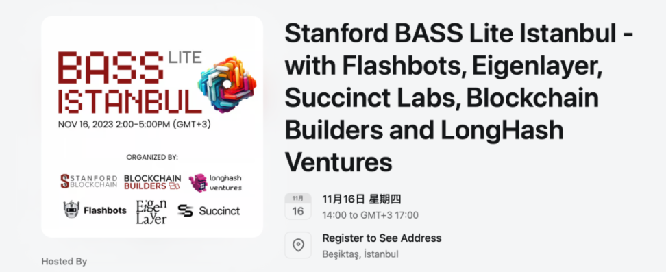 BASS Lite 是区块链应用斯坦福峰会 ( https://bass.sites.stanford.edu/ ) 的分支演讲系列,它聚集了全球的开发人员、工程师和研究人员,共同深入探讨区块链的最新话题。这场 BASS Lite Istanbul 活动将邀请 Flashbots、Eigenlayer 和 Succinct Labs 的领导者分享 MEV、Restaking 和 ZK 的发展情况。