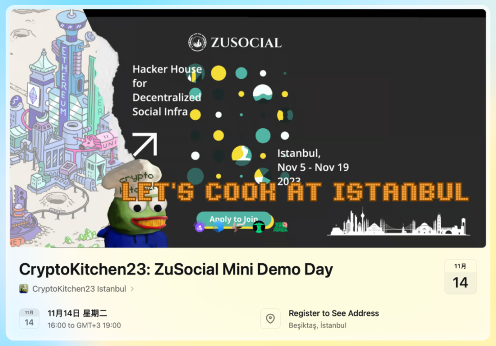报名:https://lu.ma/CryptoKitchen-ZuSocial