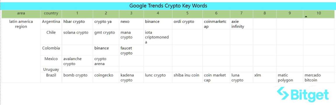 「阿根廷」 热搜:hbar、nexo、binance、ordi、axs;