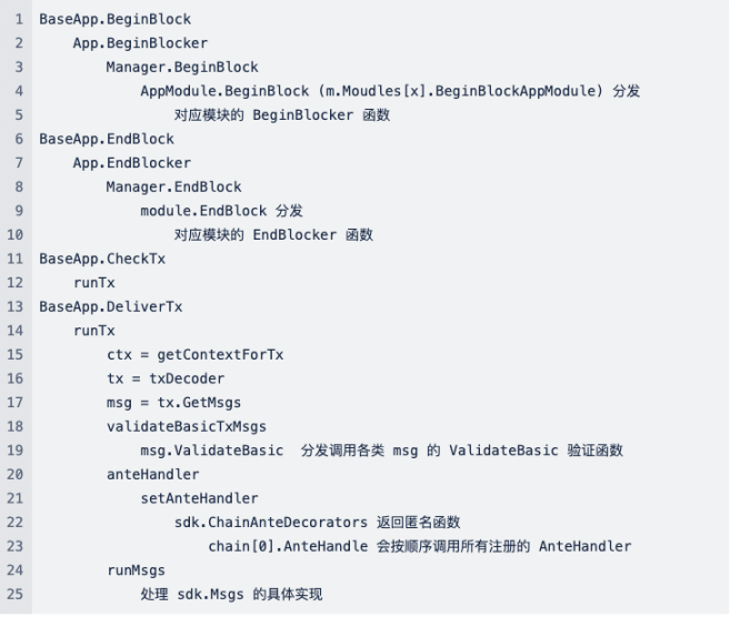以下是 Cosmos SDK 的具体执行逻辑,在分析下文漏洞触发路径时可以方便查阅理解:
