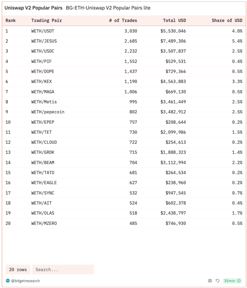 ANALOS(Token):Solana 上高热 meme coin,在经过一波大涨后,昨日跟随 solana 生态整体的下跌,单日大跌 70%。24h 链上交易量超过 $47M,交易笔数超 7 万笔。