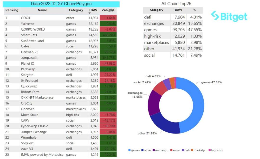 Polygon 存量活跃用户数:408,655 相比昨日增减幅:+12.25%