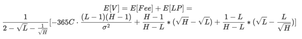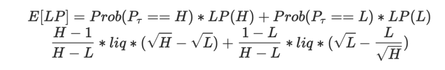 由于我们的策略要求我们持有到,所以 只有 L 和 H 两种可能。我们可以计算出我们的 lp 价值为