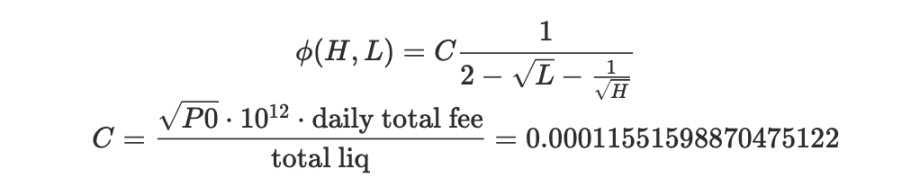 这部分其实也非常直观。,其中为手续费收取速率。我们需要对 手续费到达速率做一些扩展,我们增加假设:在任何价格上的流动性等同于当前的流动性,也就是流动性在任何价格上都一样。