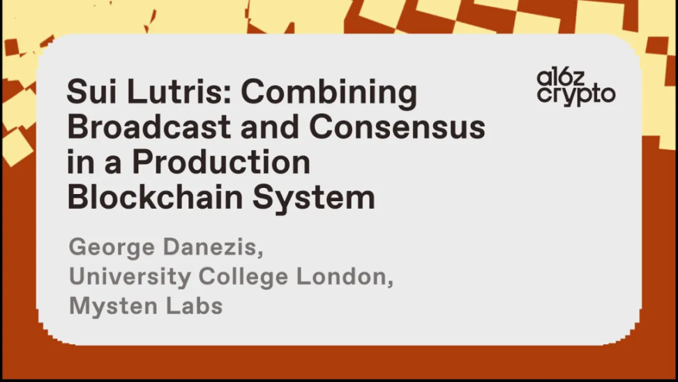 在 a16z 夏季研究 workshop 上,George Danezis(Mysten Labs 联合创始人兼首席科学家)深入探讨了Sui Lutris,这是推动 Sui 区块链的基础分布式系统协议。他的演讲全面探讨了 Sui 交易的生命周期,详细描述了用户和基础设施之间的交互,包括验证节点在推进交易中的作用。George 讨论了从 Diem 的 Fastpay 到 Sui 无共识交易路径的演变,阐明了在将 Fastpay 重新定位用于 Sui 中更广泛应用时所遇到的挑战。