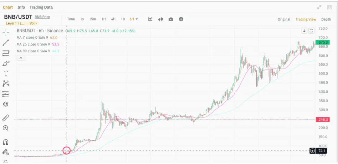 我们再回顾下,BNB 在 DeFi Summer 时作为新玩儿法金铲子的价格走势: