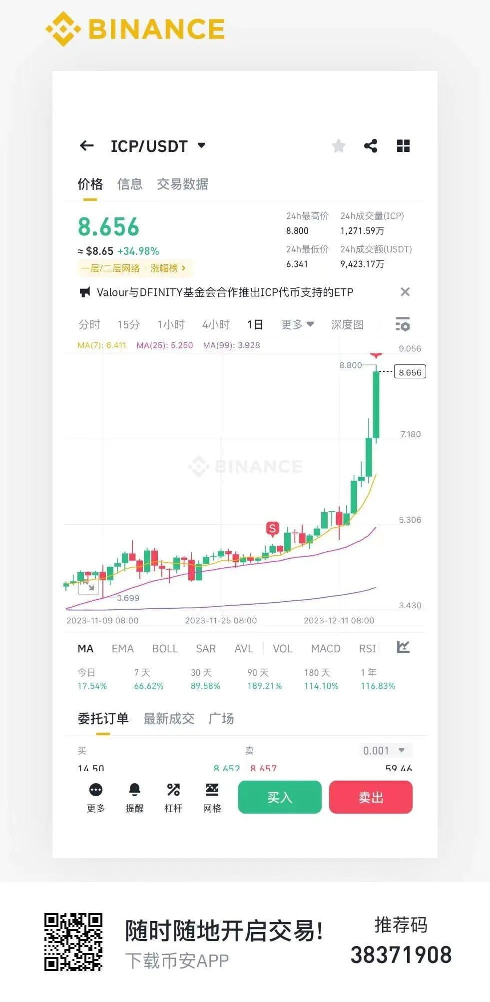 发文之时,ICP 在一天内上涨了 100%,有人说是末日战车启动,有人说是价值发现,我的思考:这是在打铭文过程中,GAS 交互免费,引发了人们对 ICP 价值的重新思考和抢购。