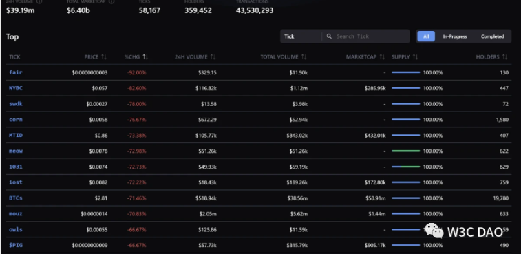 截至 2023 年 12 月 18 日的统计数据显示,BRC-20 赛道的总市值已经达到了 6.4 亿美元,突显了这一代币标准在比特币生态系统中的重要地位,为数字资产的发展开辟了新的可能性。
