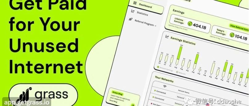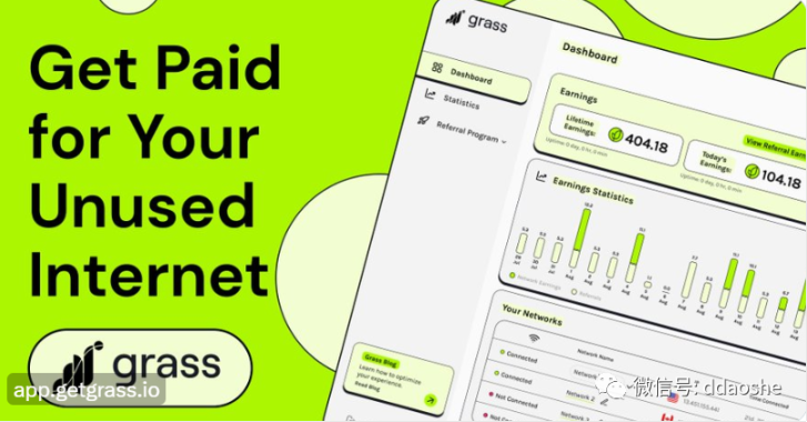 Grass 是 Wynd Network 的旗舰产品,它允许用户通过出售未使用的网络资源来通过互联网连接获利。对于个人来说,它将显示为一个网络扩展,被下载、保留并被遗忘。它将在幕后完成工作,帮助其他人获取公共网络数据,以换取协议原生 token 的付款。简而言之,就类似以前国内的玩客云产品。Grass 完美符合当下火热的 Depin 概念,同时 Wynd Network 又有 AI 、预言机、数据隐私、sol 链生态及科技巨头合作伙伴等资源加持,十分抢眼。