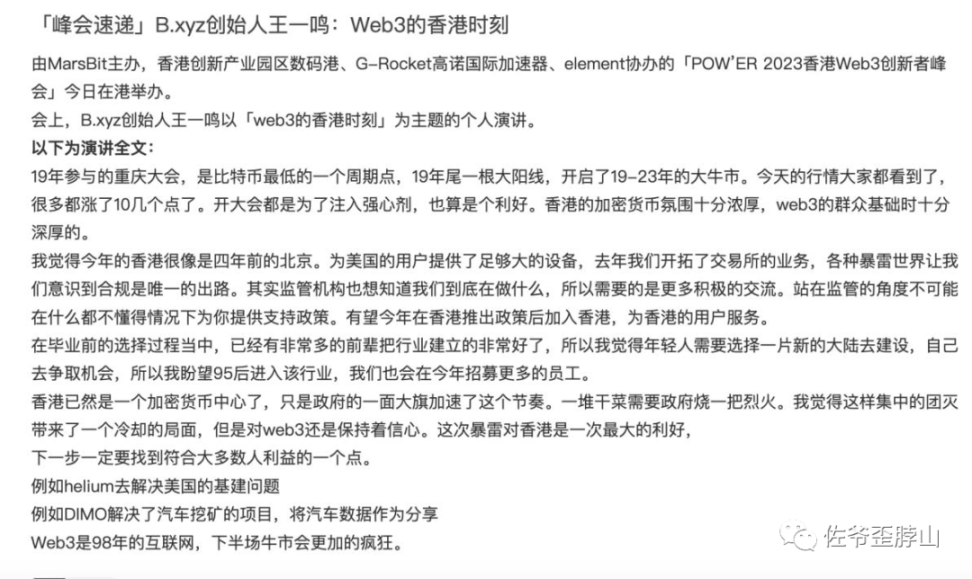 在今年初香港概念最火之时,久居幕后的 WANG 也通过火星财经的 POW’ER 大会预告了 Helium 和 DIMO 的重要性,不知道有多少有缘人捕捉到这两个密码。