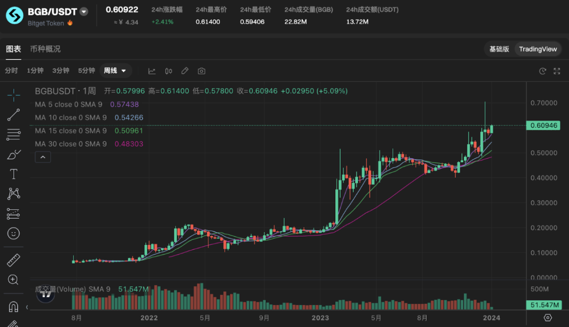 我们的业务增长支撑了我们平台代币 BGB 的卓越表现。在 2023 年,BGB 的价格从年初的 0.18 美元飙升至 12 月的新高 0.70499 美元,增长率达到了惊人的 291%。此外,BGB 更成为市值排名前五的中心交易所平台币之一。
