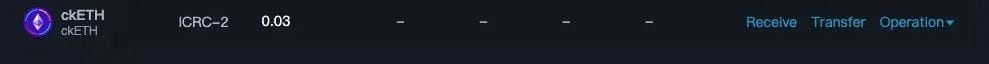 ICLighthouse 上用户个人资料上的 ckETH 余额示例
