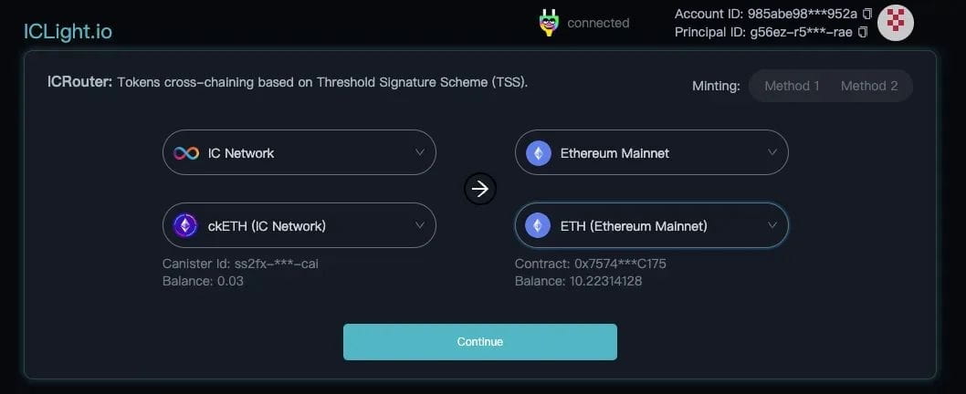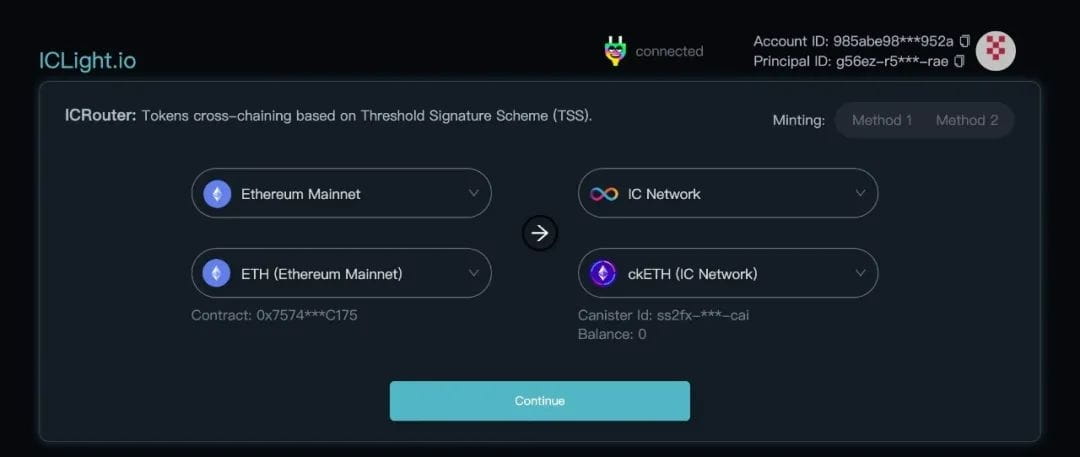 铸造 ckETH:ICP ckETH 容器智能合约将铸造相同数量的 ckETH 到指定的 ICP 主体或钱包地址;