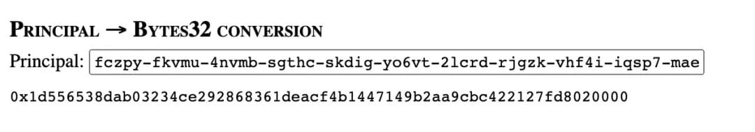 在以下链接的“主体 -> 32 字节转换”部分中输入步骤 1 中的 ICP 主体: