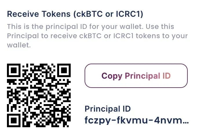 您的 ICP 主体或钱包地址也是您用于接收 ICRC-1 代币的地址。