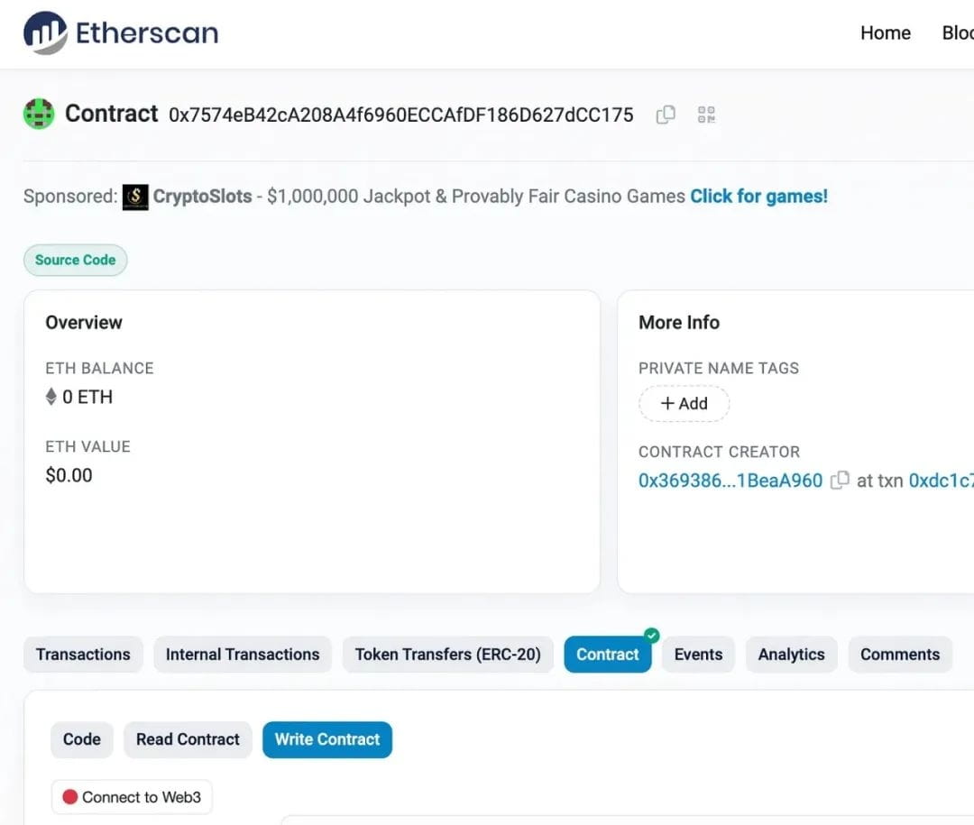 etherscan.io/address/0x7574eB42cA208A4f6960ECCAfDF186D627dCC175#writeContract