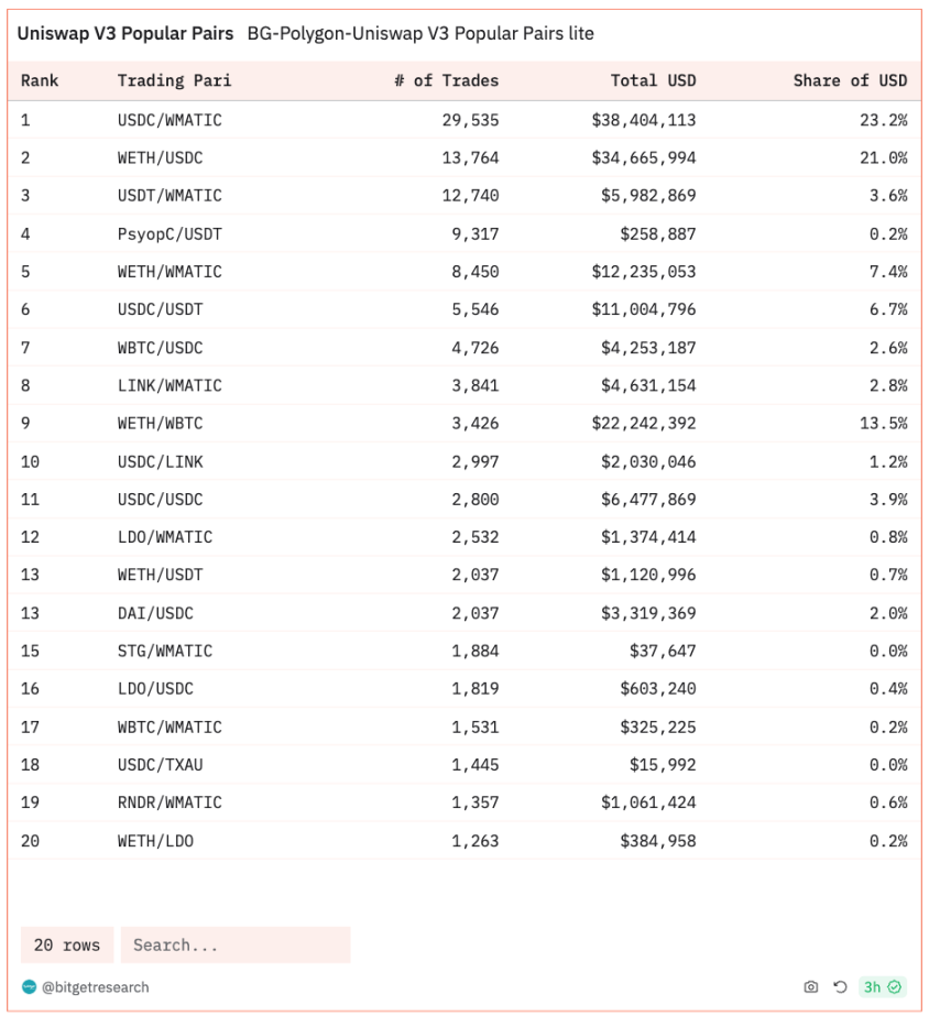 Polygon 上无特别热门交易对。