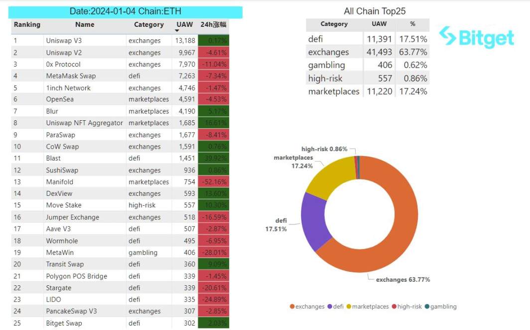 3)Dapp 日活 (UAW: unique active wallets)
