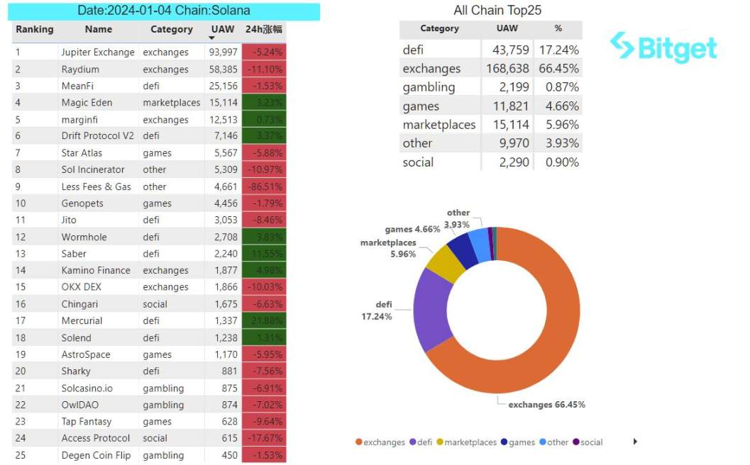 Jupiter Exchange(Dapp):Jupiter 联合创始人 Meow 表示,计划在一月底进行 JUP 代币空投,将于团队钱包中提取 10% 用于提供流动性,从社区钱包中提取 15% 用于首次空投以及早期社区活动需求,预计 JUP 创世首日将有 15%-17.5% 的代币进入流通,10%-7.5% 的代币处于热钱包存储状态,75% 的代币处于冷钱包存储状态。