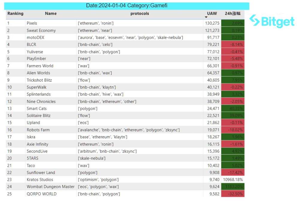 Pixels(Dapp):链游 Pixels 在其社区 AMA 中表示,游戏的 Play to Airdrop 第二季将于 1 月 5 日(UTC+8)开始,第二季相比于第一季的分配会更少,最终或将包含抽奖系统。此外,游戏主币 PIXEL 的代币发行(TGE)将于一到两周内进行,而 Play to Airdrop 第一季奖励也将于此次 TGE 前进行发放。