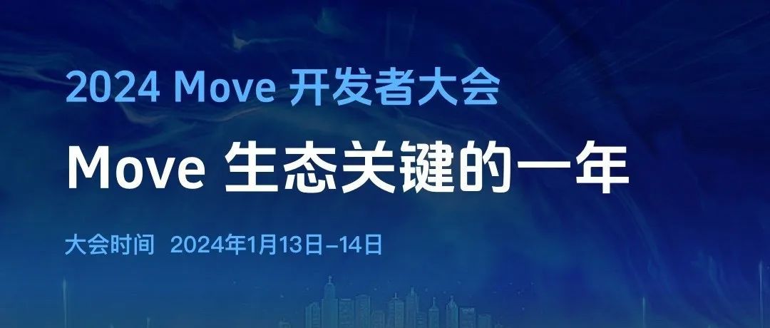 1 月 13 日至 14 日,「2024 Move 开发者大会:Move 生态关键的一年」将于上海举办。本次大会由 MoveFuns 、OpenBuild 和 MoveBit 主办,Rooch、AptosGlobal、alcove、zkMove、TinTinLand 和云赛空间协办,并得到 Aptos、Sui 和亚马逊云科技的赞助支持。