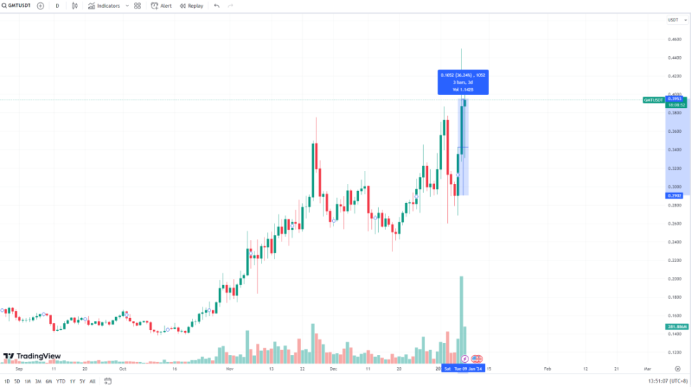 在这种财富效应下以及 StepN 团队的知名度,我们预计本周还会有成倍的新玩家进入游戏。但随着游戏的进行,新玩家的入场成本也在渐渐提高,在上周早些时候,玩家仅需 5000u 就能打出一套强势的装备,而等到现在,新玩家预计要花费接近 2 倍的资金才能打出同样的一套装备,因此在越晚时间节点入场,越需要做大量的研究,并且 Gas Hero 本身的内部机制就极为复杂,新玩家们需要花费大量的时间去弄懂这些机制,我在之前就说过,GameFi 项目最简单也是最懒的投资方法就是购买项目的代币,那么 Gas Hero 的官方代币 $GMT 伴随着游戏的火热在近日也被大幅拉升,3 日内的涨幅达到了 36%,尽管这个涨幅远没有 NFT 的涨幅来的夸张,但在不做过多研究的情况下利用简单的投资方式防止了自己的踏空,并且 NFT 资产的风险要远高于代币,毕竟有流动性的问题在那里摆着的,一旦热度下降,这些 NFT 资产很有可能会烂在手里,如同现在大部分的 Brc-20 铭文。