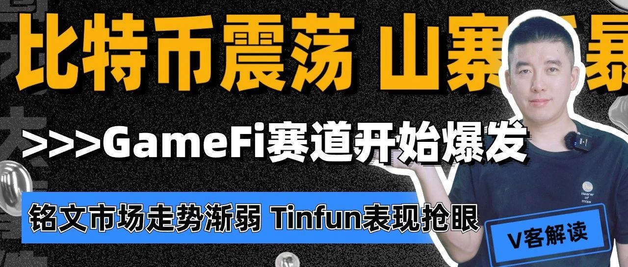 比特币震荡,山寨币暴跌,暴风雨即将来临;GameFi 赛道开始爆发;铭文市场走势渐弱,Tinfun 表现抢眼